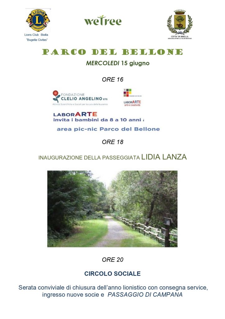 Mercoledì 15 giugno alle ore 16,00 Fondazione Angelino e LaborARTE organizzano presso l’area picnic del Parco del Bellone un laboratorio di Colore e Scrittura dal titolo l’Albero Fiore dedicato ail bambini dagli 8 ai 10 anni. Prendendo come spunto il libro “Il signor G.” di Gustavo Roldán, raccontiamo e interpretiamo la storia di questo signore, il signor G., appunto, nato e cresciuto in un paese avvolto nel silenzio, arido e piccolo. Ad un certo momento decide che vorrebbe vivere in un posto più bello in un paese più vivo e contribuire alla gioia dei suoi abitanti, e perché no un paese anche un più “musicale”. Non fu facile farlo capire agli abitanti del paese, ma il signor G deciso e caparbio un giorno prese i suoi attrezzi e decise di partire… Alle ore 18,00 avrà luogo l’inaugurazione della “Passeggiata Lidia Lanza” a cura del Lions Club Biella “Bugella Civitas” e dell’associazione Wetree. La partecipazione al laboratorio sarà gratuita, per le iscrizioni telefonare allo 015 1515 3138 o scrivere una mail a laborarte@fondazioneangelino.it –